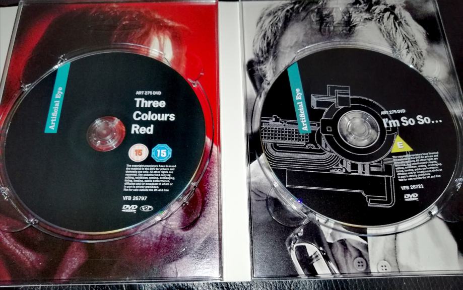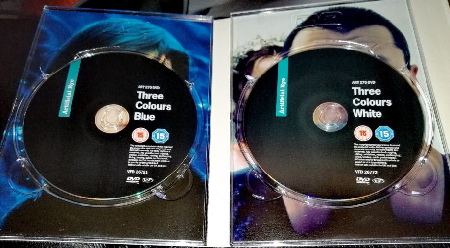 Kultni režiser Krzysztof Kieslowski in njegova trilogija Three Colours (Tri barve): BELA, MODRA, RDEČA z odlično Juliette Binoche v glavni vlogi. Plus dodatni disk z dokumentarcem! Kot novo.