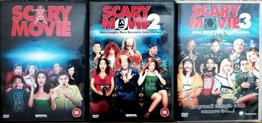 3 kultne grozljive komedije, parodije bratov Wayans z gosti Anna Farris, Tik Curry, Leslie Nielsen, James Woods, Carmen Electra, Shannon Elizabeth, Regina Hall, Charlie Sheen, Jenny McCarthy, Denise Richards.
