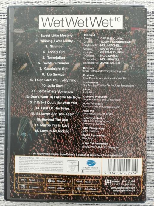 Prodam koncertni DVD škotske pop skupine Wet Wet Wet. Takrat so praznovali 10. obletnico delovanja in po številnih uspešnicah, še posebej pa po nepozabni Love is All Around, so do zadnjega kotička napolnili domači stadion. Oglejte si ta nepozabni večer v Glasgowu.