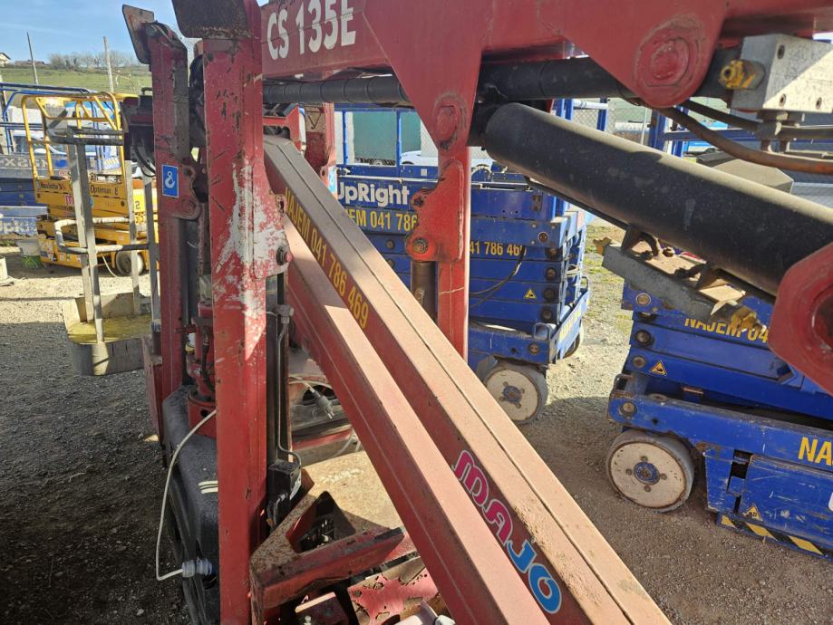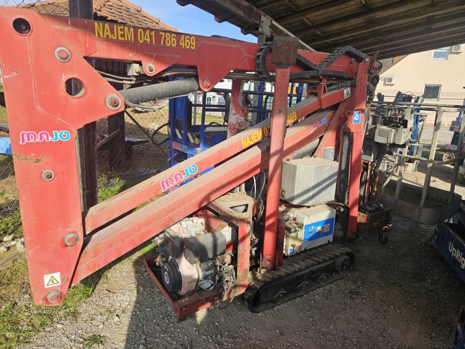 Prodamo dvižno košaro v delni OKVARI. Gre za dvižno ploščad na gosenicah z delovno višino 13,5m. Stroj je vodljiv na daljinsko upravljanje in je možno voziti tako na elektro pogon kot bencin. V okvari je motor zato ga je trenutno možno upravljati samo na elektro pogon.