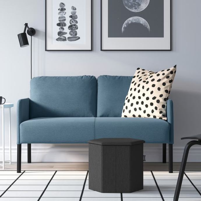 Prodaja se skoraj nov dvosed GLOSTAD iz Ikee, modre barve. Na voljo dva kosa. Možen je tudi nakup posameznega kosa.
