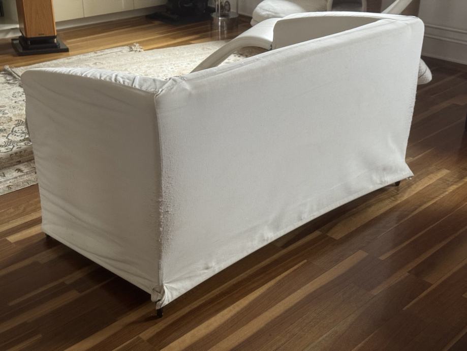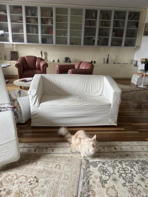 Dvosed je iz leta 2000, ima snemljivo pralno prevleko, ki je na vogalih poškodava zaradi praskanja mačka, sedalni del ima spominsko peno (memory foam).
