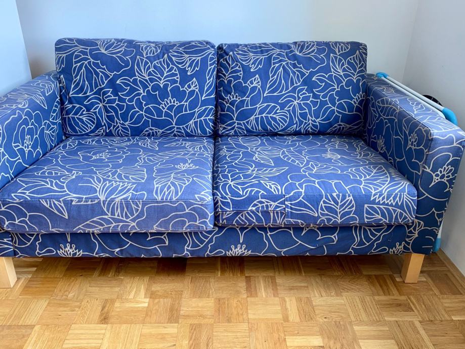 Lepo ohranjen. S posebno prevleko v modro bež barvi, prevleka je pralna. Dvosed smo kupili 8 let nazaj, vendar je bil od tega 5 let postavljen v sobi, ki je ne uporabljamo. Cena novega je bila 379 EUR, prodam za 120 EUR.