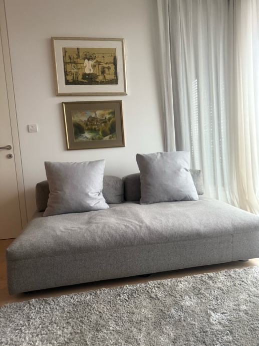 Prodajam rabljen kavč dim. 190 x 125 cm, priznanega proizvajalca Gruppo Euromobili, Desiree, Monopoli, v blagu sive barve. Kavč ima elegantno minimalistično obliko in je opremljen z dvema velikima blazinama za dodatno udobje. Hrbtni naslon z blazinama je premičen. Je dobro ohranjen in se bo lepo podal v sodoben dom.