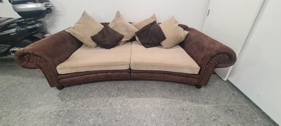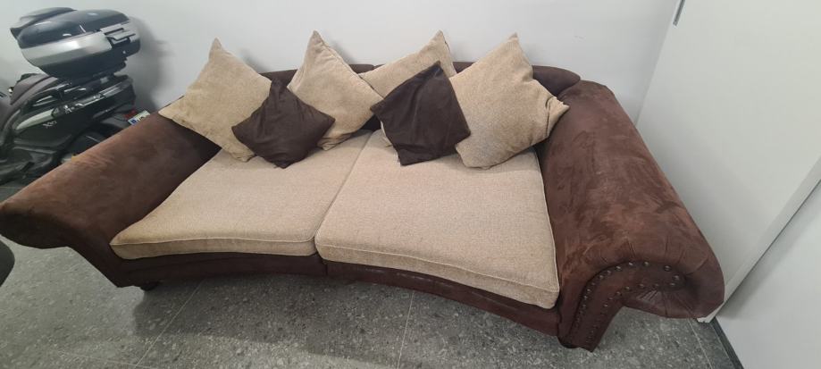PRODAM DVE LETI STARO ZOFO IN TABURE, ZELO LEPO OHRANJENO IN VZDRŽEVANO. MERE ZOFE 276 X 140 X 81 , TABURE JE PREMERA 80CM. TEMNO RJAVE BARVE, KOMBINIRANO S SVETLO RJAVO. SEDALNE POVRŠINE SO BILE VEDNO ZAŠČITENE S PREGRINJALOM. ZELO KVALITETNE IZDELAVE. ŠE VEDNO SE PRODAJA V LESNINI, KOMPLET V AKCIJI STANE 1800 EUR. PRODAM ZA 490 EUR. CENA ŠE NI ZADNJA