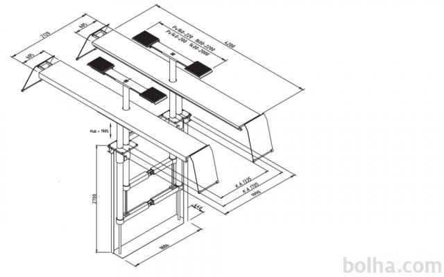 Dolžina med bati dvigala 1335 mm / 1705 mm