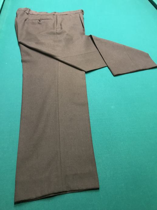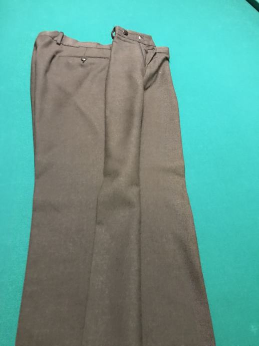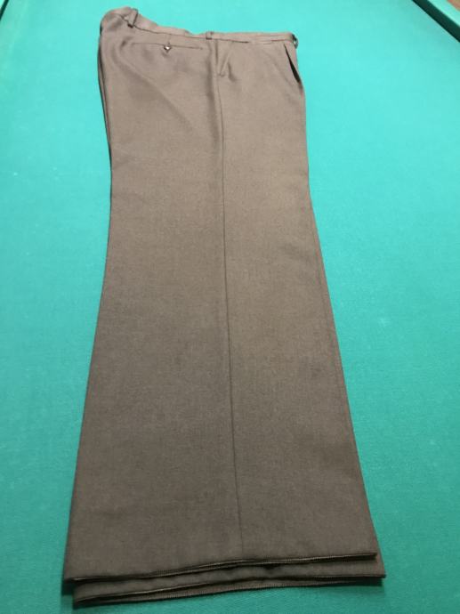 Na voljo so elegantne moške hlače temno rjave barve. Obseg pasu 96-98 cm, dolžina 103 cm. Material viskoza in poliester. Hlače so z naborki, Gatsby stil. Zelo udobne. Rabljene a kot nove.
