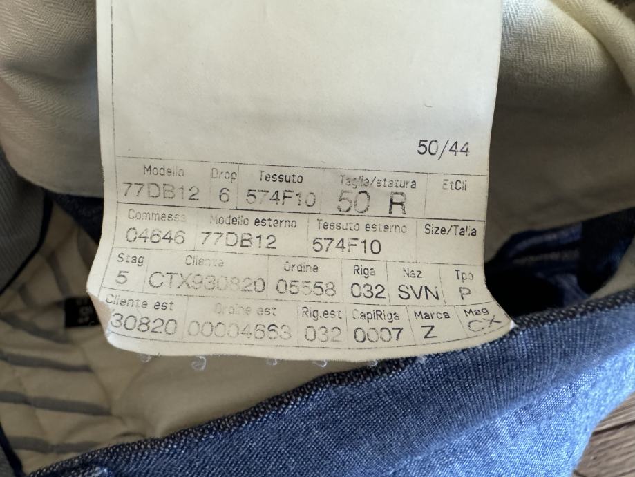 Hlače so modre barve, priznana blagovna znamka Ermenigildo Zegna.