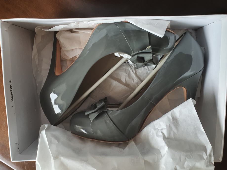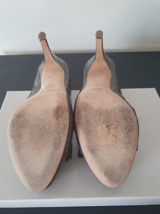 Prodam sive salonarje z visoko peto. Kupljeni v trgovini Diffussione tessile (outlet za Max Mara, Marella...). Obuti 2-krat. Velikost: 39.5