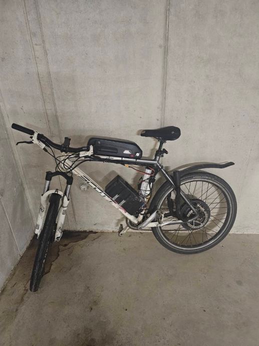 Predelan v e-kolo leta 2024. Celotna investicija s kolesom vred je bila 1850€. Vse je bilo kupljeno novo. Kolo ima dve ločeni bateriji, med katerimi se preklaplja el. motor. Obe bateriji sta snemljivi. Zgornja ima še usb vhod in indikator kapacitete. Secer je na modulu za gas na balanci tudi indikator kapacitete. El. motor je v zadnjem kolesu (hub motor) - ima direktni pogon. Ima tudi precej navora in je kar odziven. Domet z obema baterijama pri ca 30 km/h, ne da bi poganjal je ca 130km oz čisto odvisno kako voziš. Leti pa 48km/h. Zic je vzmeten, diski na obeh kolesih... Deluje vse bp. Prazen se pa napolne v 3h.