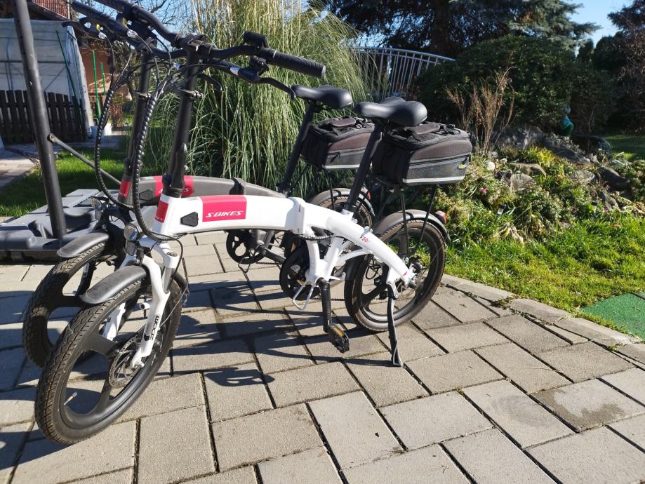 Popolnoma ohranjena kot nova... Z dodatno opremo , oba imata prtljažnik z torbo ki je snemljiva z naramnim pasom in jo lahko vzamete s seboj... Za belo kolo tudi košara za nakupe. Popolnoma zložljiva in gresta v klasični prtljažnik avtomobila....