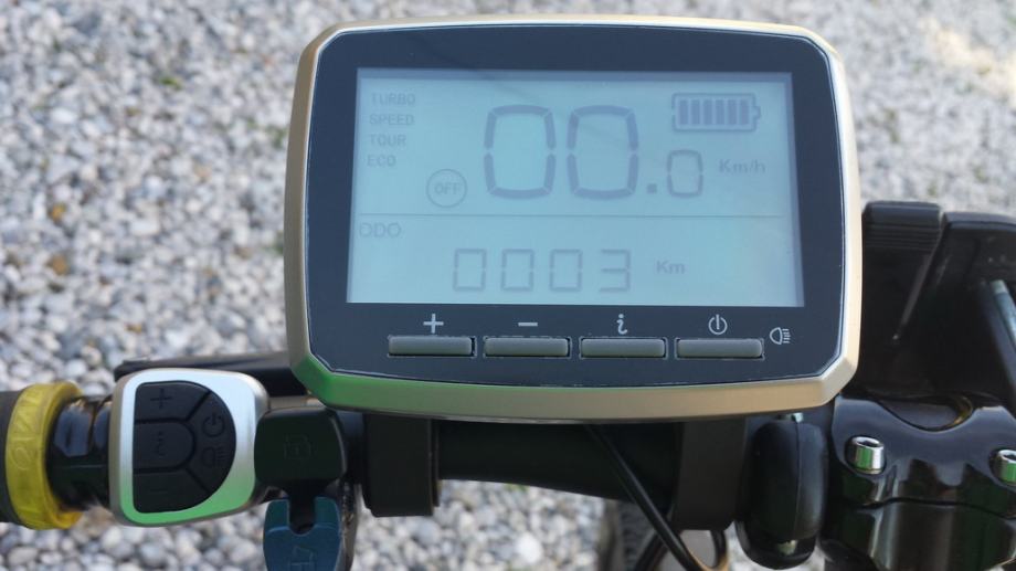 Velik in pregleden display omogoča varno vožnjo tudi osebam s slabšim vidom. Sistem ima možnost izbora 5 različnih moči. Tovarniško je omejitev hitrosti nastavljena na 25km/h, priložena so servisna navodila za dvig omejitve do 60km/h ali popolen izklop omejitve. Originalno je nameščen verižnik 42 zob. Verižnik je možno zamenjati z manjšim ali večjim.