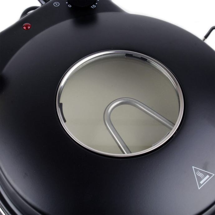 Za optimalno nastavitev postopka peke in pregled nad vsemi parametri je picerija poleg termostata opremljena tudi s 30-minutnim časovnikom in signalno lučko. Poleg tega lahko postopek peke kadarkoli preverite skozi okno za ogled, ne da bi morali odpreti aparat za pico.