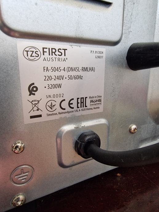 Prodam skoraj novo pečico FIRST z dvema električnima kuhalnima ploščama. Pečica za peko ni bila nikoli uporabljena, kar je razvidno tudi iz slik. Na kuhalnima ploščama pa se je kuhalo maksimalno 10x. Priloženi tudi vsi pripomočki...pekač in pribor za pečenje piščanca (pečica ima motor za vrtenje).