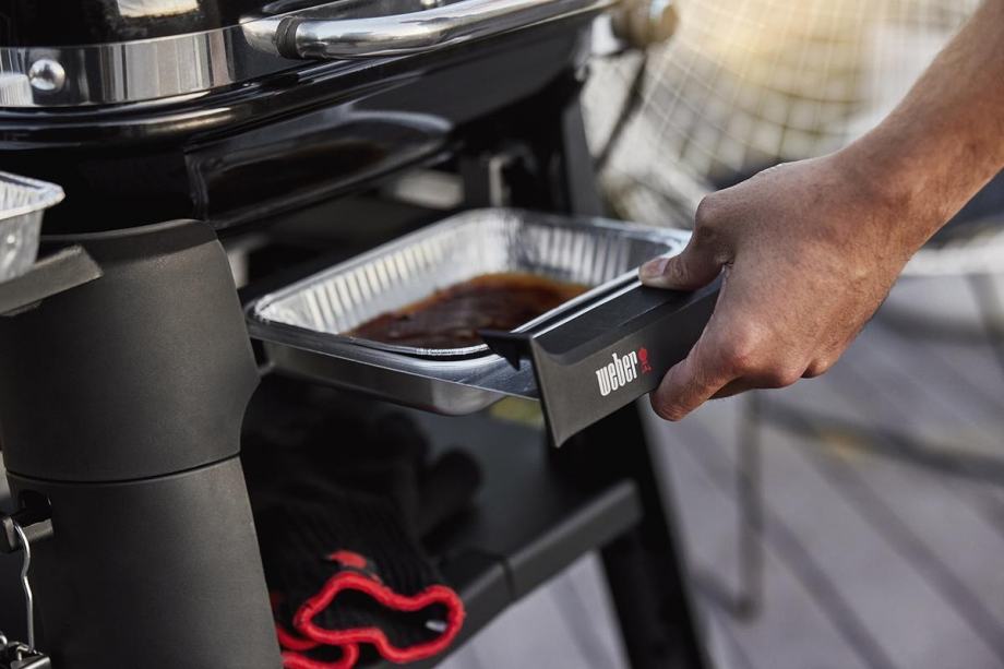 Pladenj za maščobo s sprednjim dostopom olajša odstranjevanje in čiščenje.