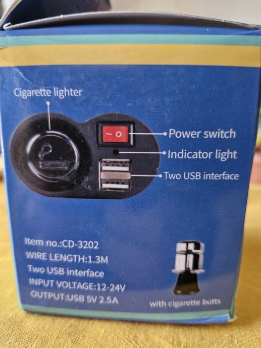 Prodam univerzalni vodo odporen polnilec za motor 2x USB in cigaretni vžigalnik s stikalom in varnostno varovalko .Pošljem tudi po pošti , na tel: