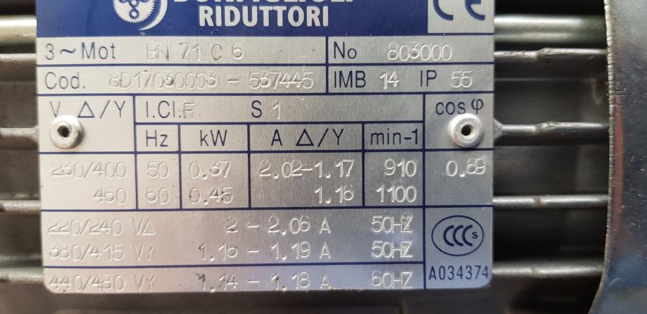 Prodam elektromotor moč 0,37 kW, 910 obrt/min, trofazni.