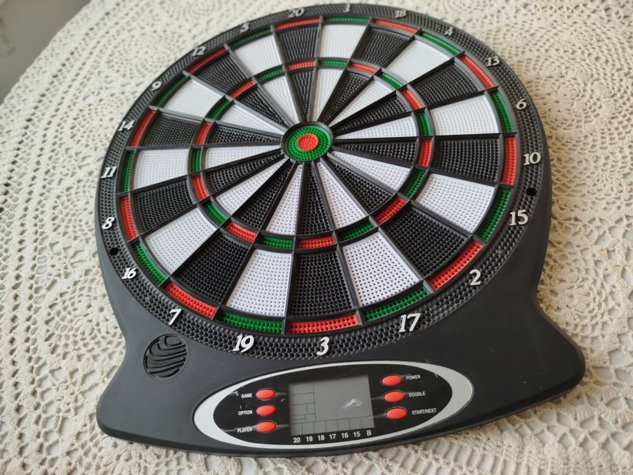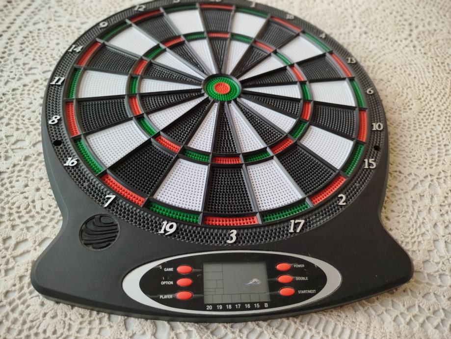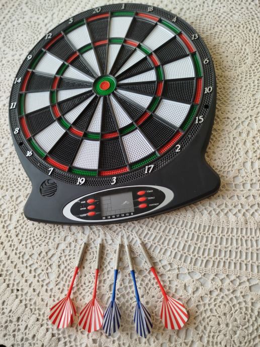 Elektronska pikado deska, na baterije, 5 kom puščic-konic, delujoče, lepo ohranjeno.