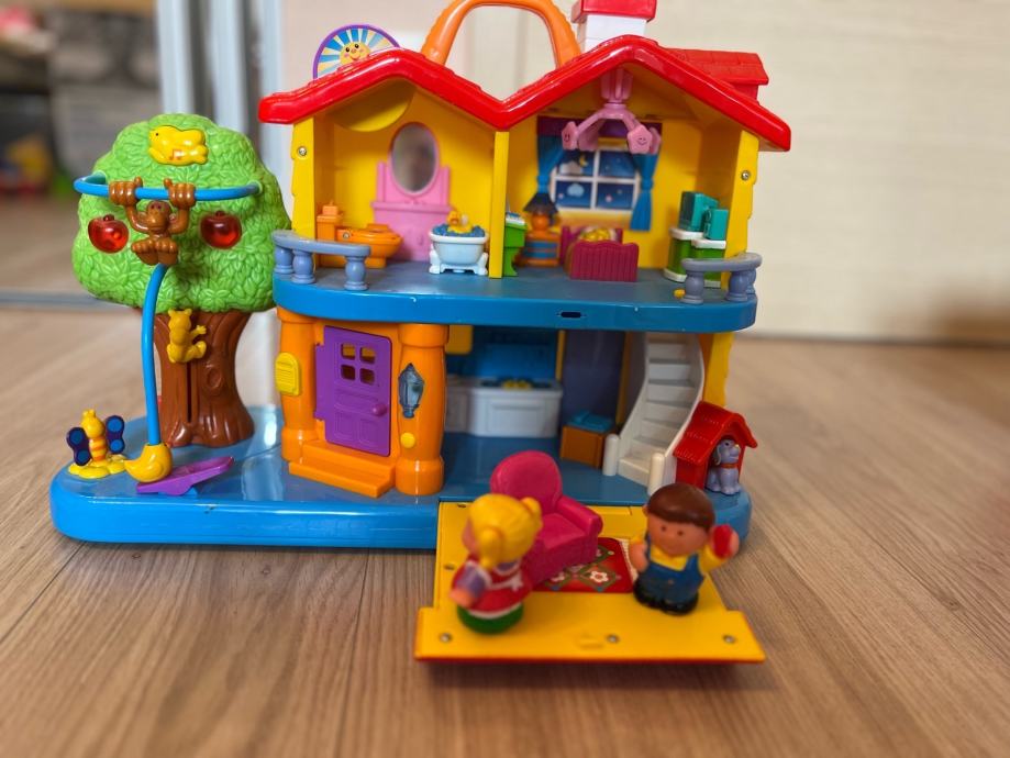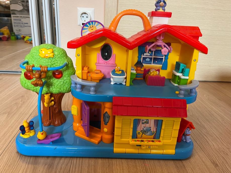 Igralna hiška ima 20 različnih zvokov in tri premične figure.