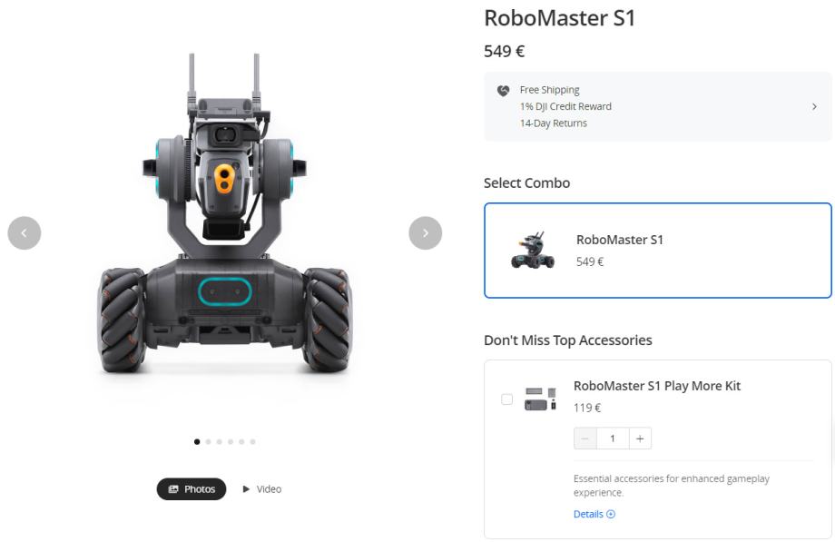 Prodam zelo malo rabljen DJI Robomaster S1, uporabljen samo nekajkrat – v odličnem stanju, kot nov. Priložena je vsa originalna oprema in embalaža.