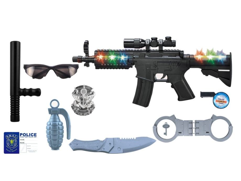 Vsi elementi so izdelani iz visokokakovostnega materiala, zaradi česar je komplet vzdržljiv in odporen na intenzivno igro. Realistična policijska puška s svetlobnimi in zvočnimi učinki doda igri dinamiko, dodatni dodatki, kot so lisice, značka ali granata, pa celotno stvar naredijo še bolj realistično.