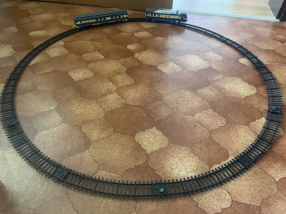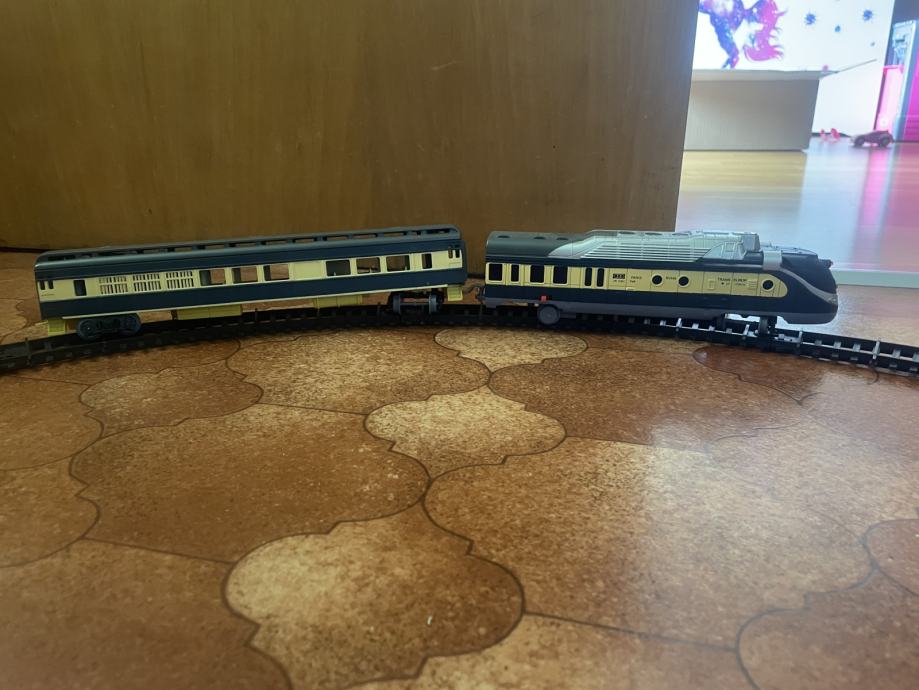 Prodam igračo vlakec skupaj z tiri je na baterije spušča zvoke vlaka, vlakec deluje.