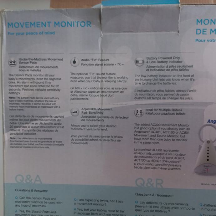Prodam rabljen senzor dihanja Angelcare, primeren tudi za dvojčka.