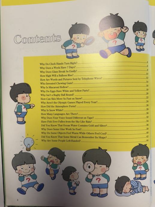 Poučna otroška knjiga v angleščini, ki odgovarja na zanimiva vprašanja o svetu okoli nas. Na zabaven in slikovit način razloži naravne pojave, zgodovinske zanimivosti, znanstvena dejstva in vsakdanje skrivnosti. Knjiga je bogato ilustrirana in primerna za radovedne otroke, ki želijo spoznavati svet.