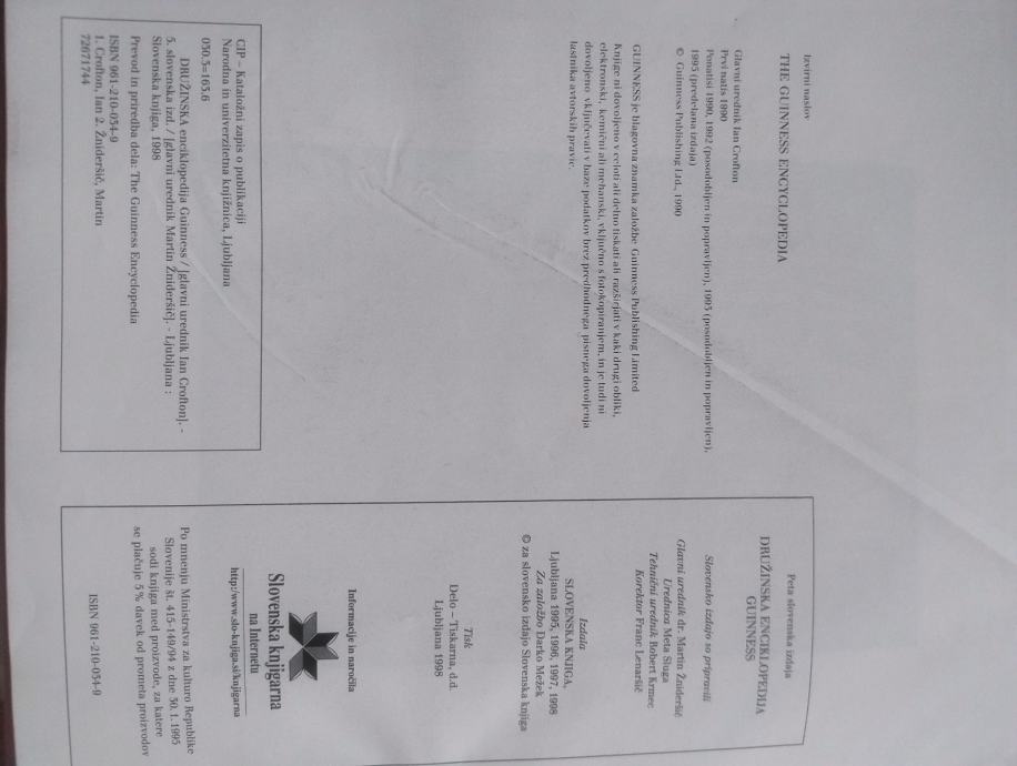 Družinsko enciklopedijo Guness Slovenska knjiga prodam