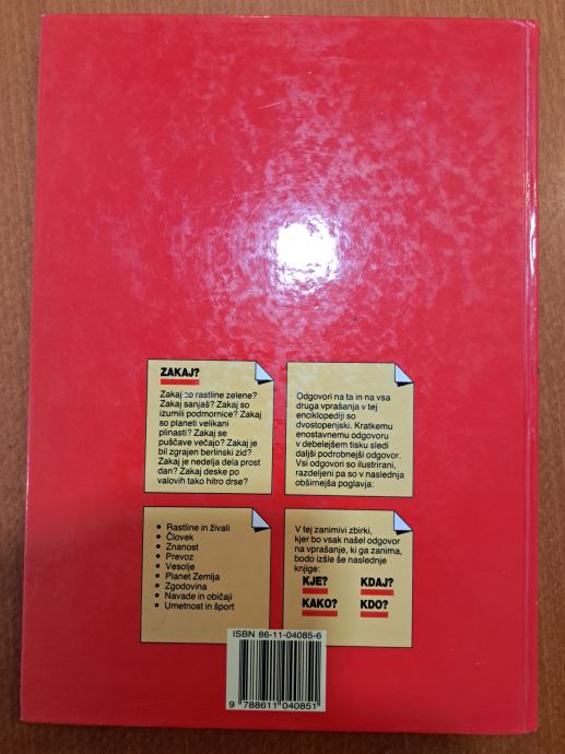 Prodam lepo ohranjeno enciklopedijo z naslovom Enciklopedija vprašanj in odgovorov - Zakaj? Vsebina knjige pa razkrivajo priložene slike.
