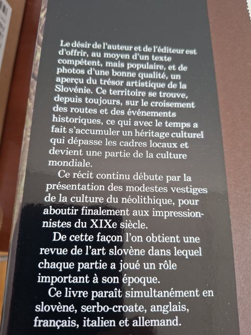 Prodam odlično ohranjeno knjigo Le trésor artistique de la Slovénie avtorja Leva Menašeja. Knjiga je napisana v francoskem jeziku in predstavlja izjemen pregled umetnostnega zaklada Slovenije.
