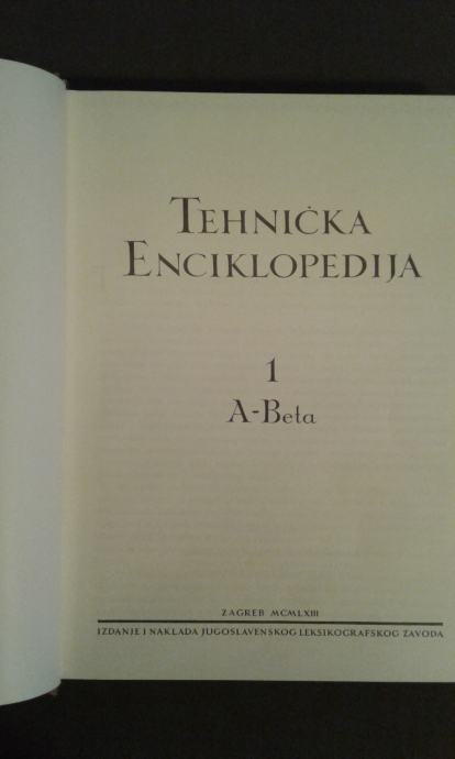 Tehnička enciklopedija, 1 A - Beta, 2 Beto - C, 3 Č - Električna, 4 Električne - Elektroni, Izdanje i naklada Jugoslavenskog leksikografskog zavoda, 1973, Posamezna knjiga je 15€. Komplet je 30€.