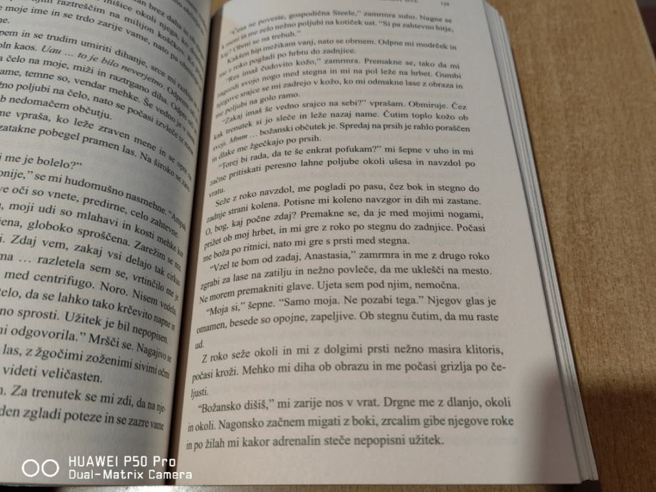 Jamesova piše iskrivo in zelo opisno, svojim likom vdihne živ smisel za humor. Kot v prvem delu se tudi v drugem nekaj pogovorov med Ano in Christianom razvije po elektronski pošti, ki šviga med njima in poudarja spogledljivo ter šegavo stran njunega odnosa.