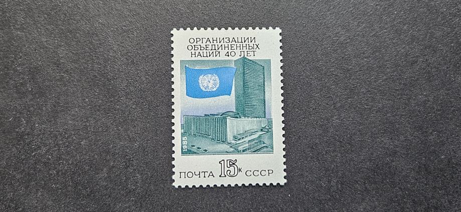 Tema: 40 letnica UNO (Združenih narodov)), OZN, organizacije, zastave, zgradbe.