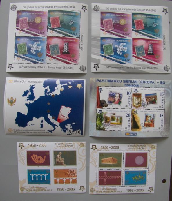 set 25 blokov - 2006-50 let prve znamke Europa Cept - Albanija, Hrvaška, Gruzija, Bosna in Hercegovina federalna pošta, Hrvaška pošta Mostar, Republika Srpska, Črna gora, Srbija in Črna gora, Turčija, Turški Ciper, Makedonija, Peru