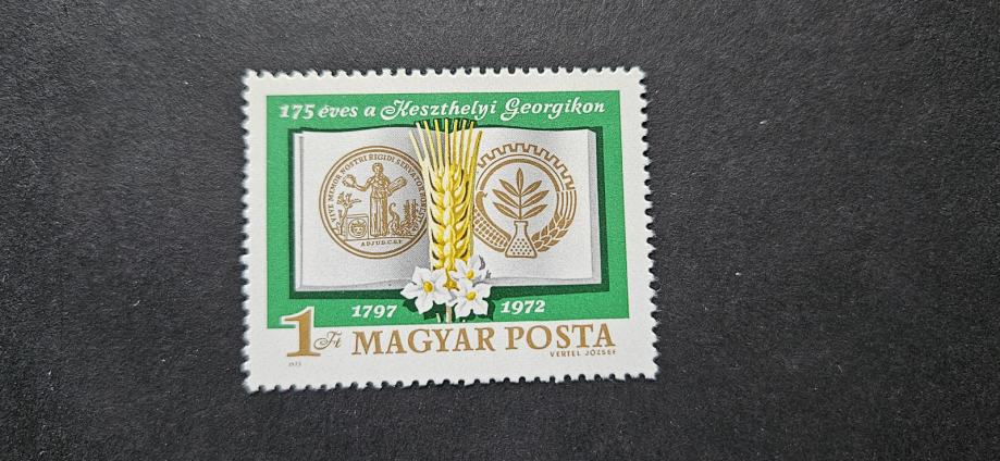 Tema: cvetje, izobraževanje, knjige, emblemi, poljedelstvo, univerze, žito, 175 letnica inštituta Georgikon v Keszthelyju.