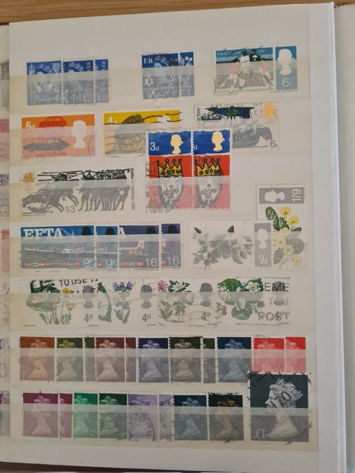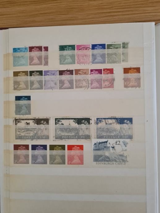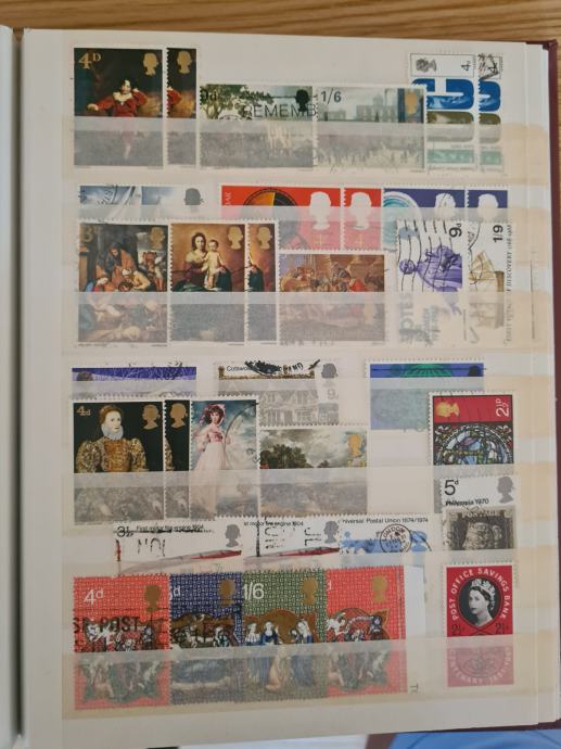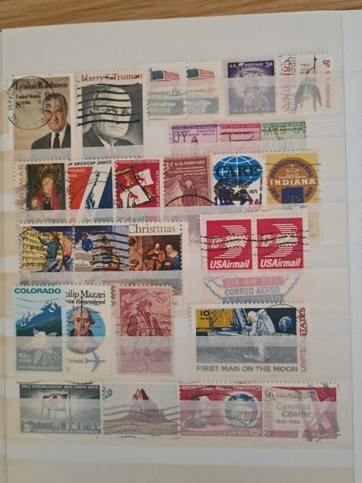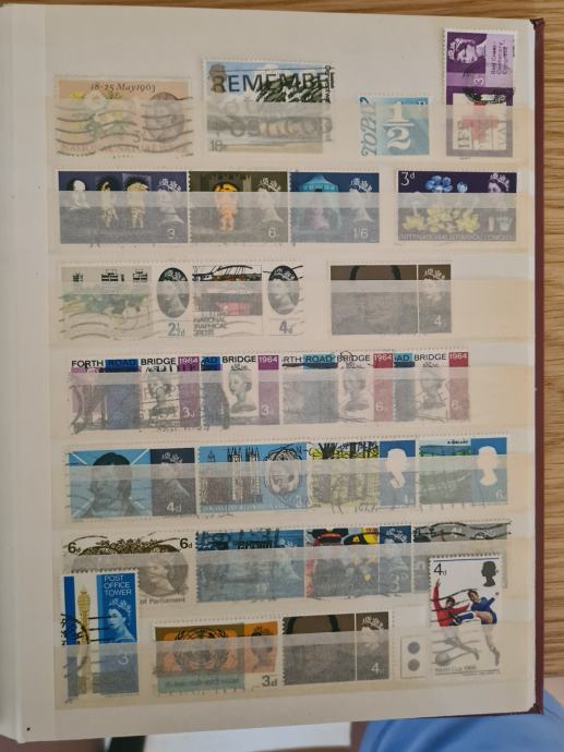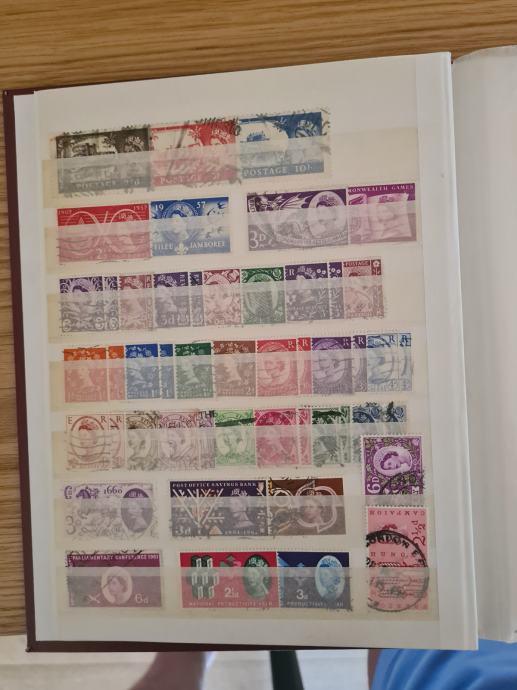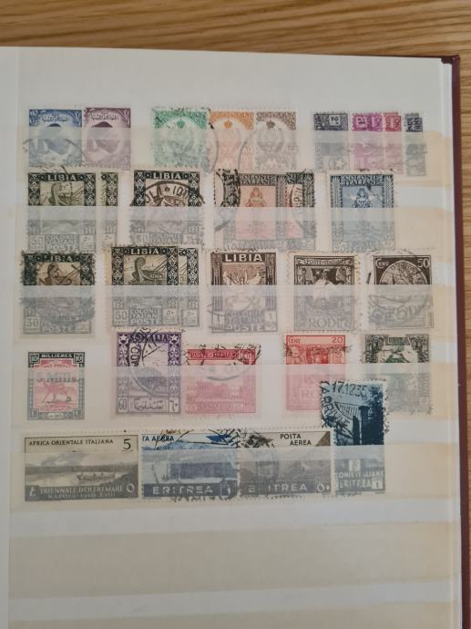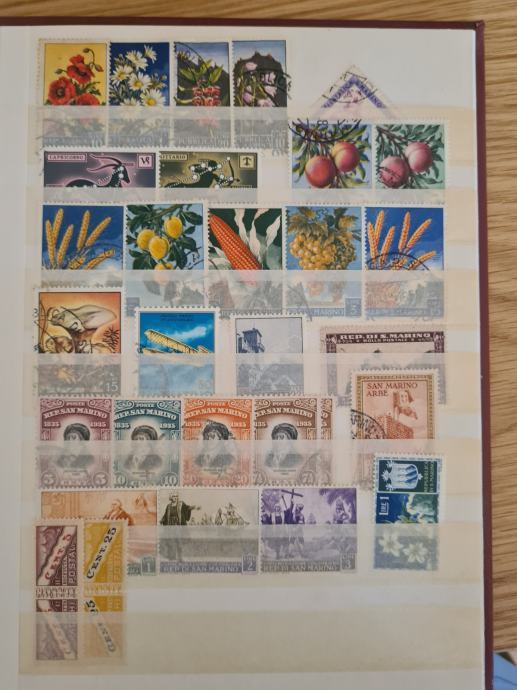 Rdeč album z starimi znamkami, v glavnem so žigosane, dobro ohranjene