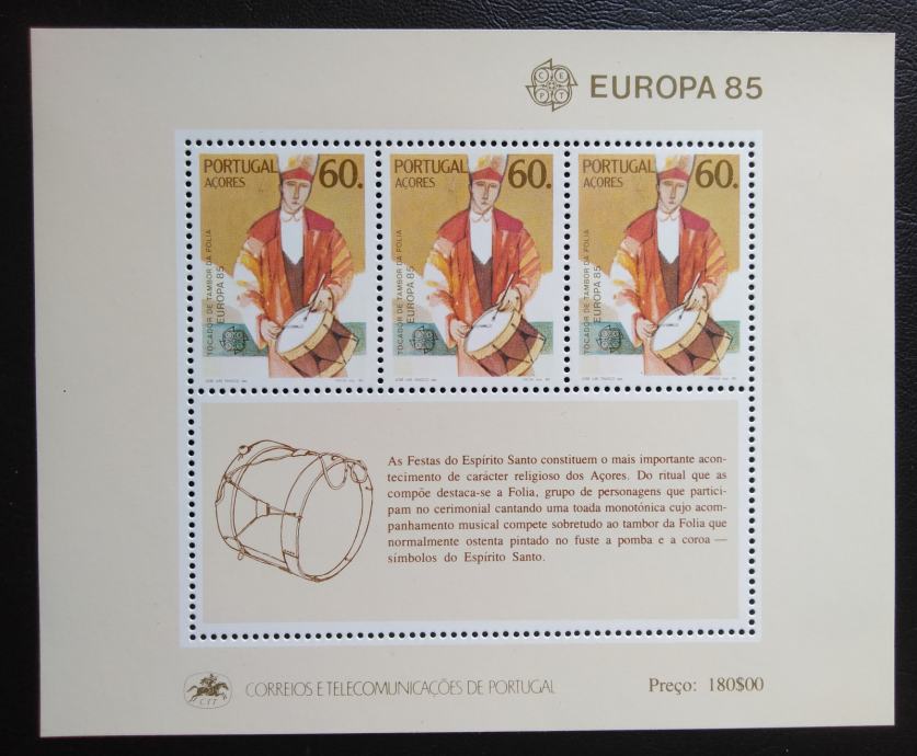 Prodajam dvojnike in ostale viške iz svoje zbirke. Azori,1985, blok 6 umetnost, glasba.