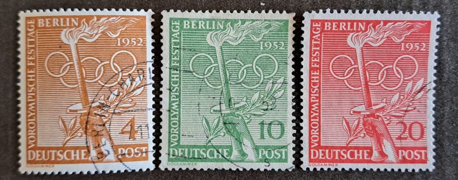 Prodajam dvojnike in ostale viške iz svoje zbirke. Berlin 1952 – celotna serija šport, olimpijada, Michel 88/90, kataloška vrednost 55 €.
