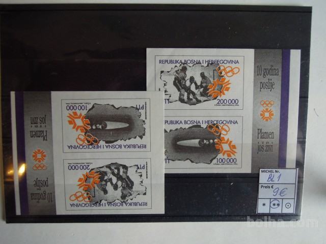 Prodam dva bloka 10. obletnica OI Sarajevo, ki sta bila izdana leta 1994.
