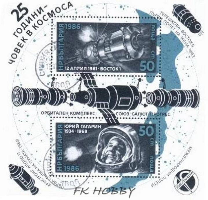 BOLGARIJA 1986 VESOLJE GAGARIN ** Mi 3463/3464 (B164) ** blok žig (23)