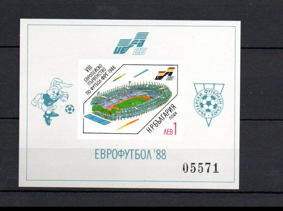 BOLGARIJA 1988 NOGOMET ŠPORT ** Mi 3671 (BL 178B) blok nezobčan (12)