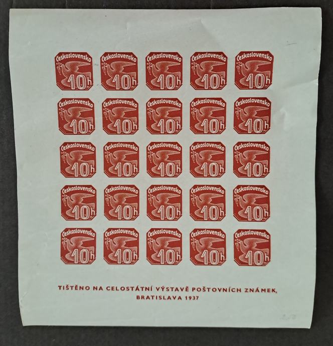 Prodajam dvojnike in ostale viške iz svoje zbirke. Češkoslovaška, 1937 blok 2 – filatelistična razstava.