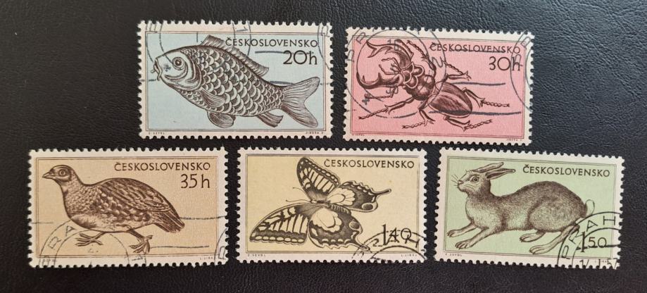 ČEŠKOSLOVAŠKA 1955 celotna serija favna, živali, ptice, insketi, ribe