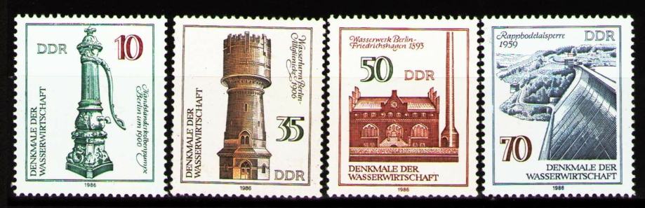 DDR 1986 VODOVOD ARHITEKTURA ZGRADBE ** Mi 2993/2996 ** serija (18)