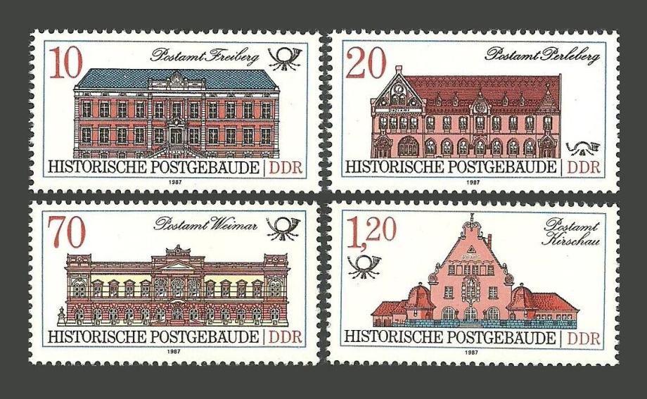 DDR 1987 POŠTA ARHITEKTURA ZGRADBE ** Mi 3067/3070 ** serija (18)