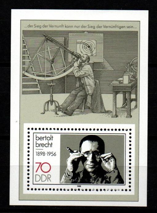 DDR 1988 BERTOLT BRECHT DRAMATIKA ** Mi 3148 (BL 91) ** blok (23)