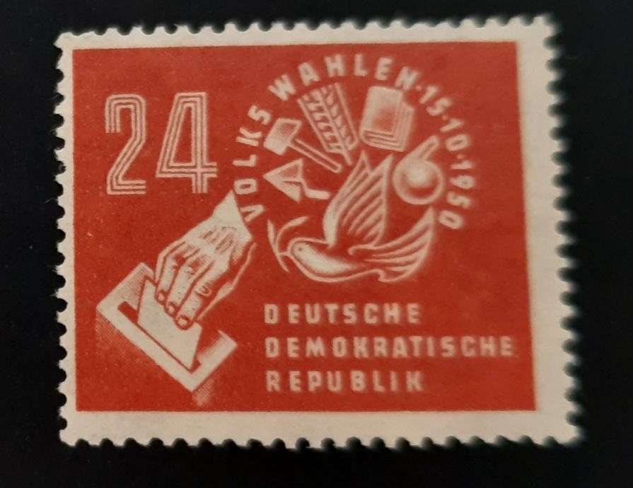 Prodajam dvojnike in ostale viške iz svoje zbirke. DDR – ključna znamka »volitve 1950«, Michel številka 275, kataloška vrednost: 20 €, nežigosana znamka. MNH**.