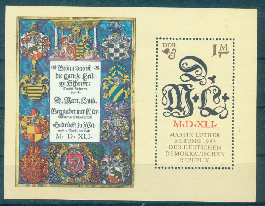 DDR,MARTIN LUTER,OBLETNICA ,ČISTE ZNAMKE, MICHEL 2833, BLOK 73,1983