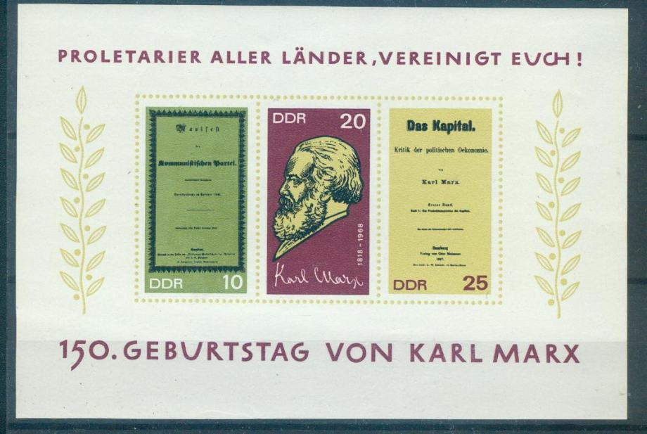 DDR, ,OBLETNICA KARL MARX, 150 LET ROJSTVA, SERIJA ČISTA, - DEAN1953